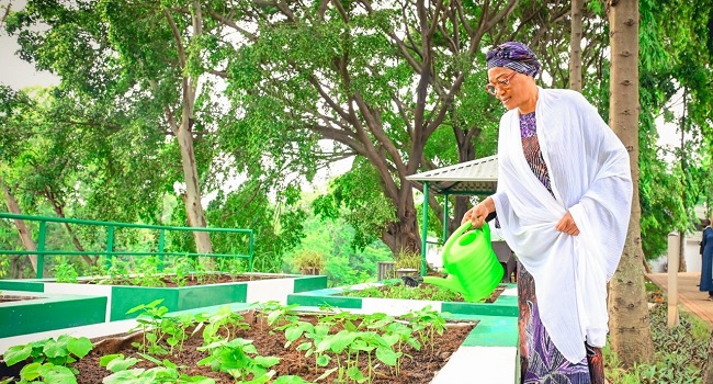Looking at the face of the wife of the President of Nigeria, one would figured out she was under pressure to do what she did, holding the leafy, greeny vegetables that she grew in her backyard farm at the Presidential residence in Aso Rock, Abuja. In all honesty, Nigeria is blessed with large swathes of arable farmland that can grow virtually any seed planted into it.